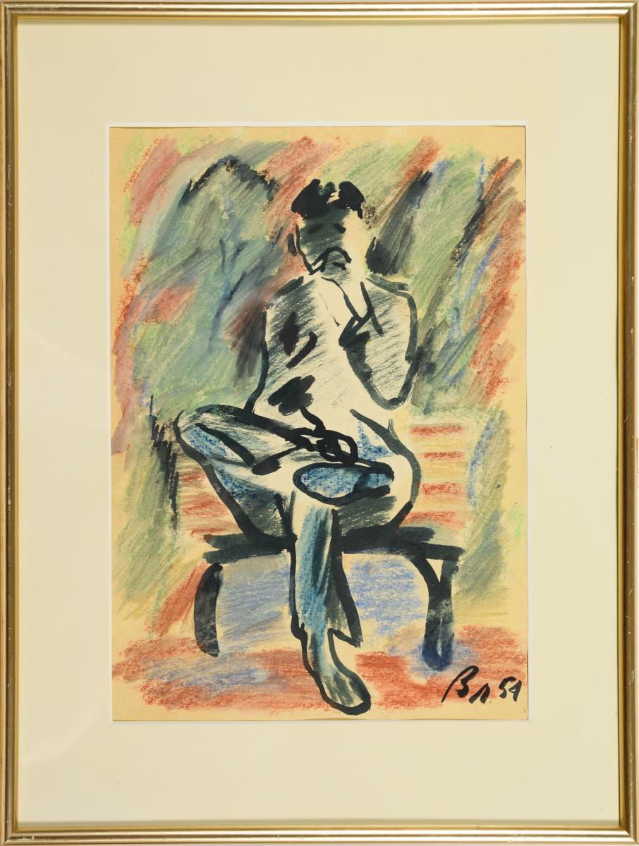 Watercolor. Monogrammed in Cyrillic lower right. (19)54.