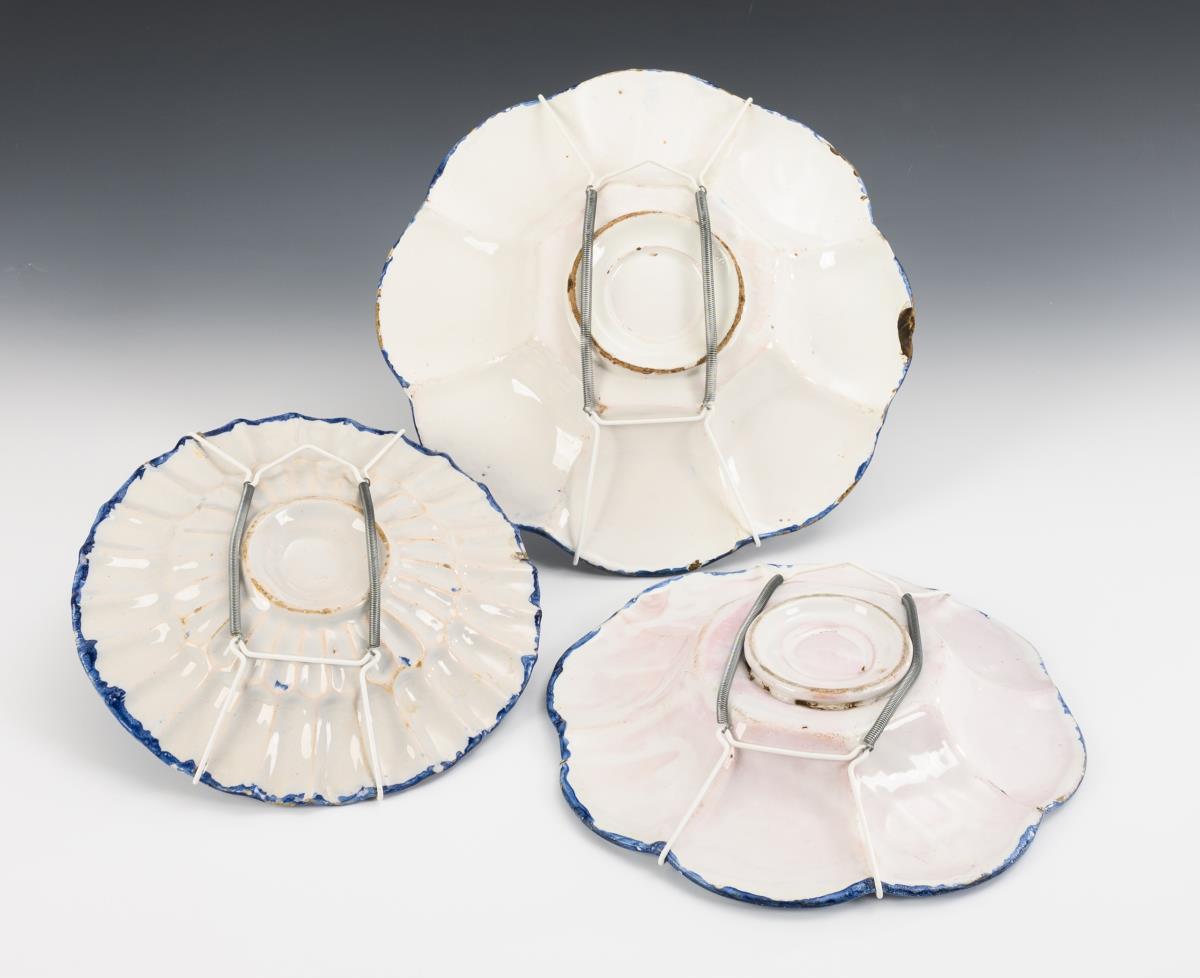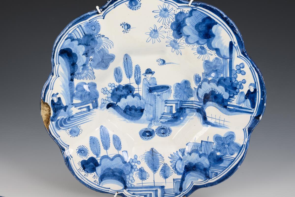 Glazed white, painted in cobalt blue. Ø 22.5 to 29.5 cm.
