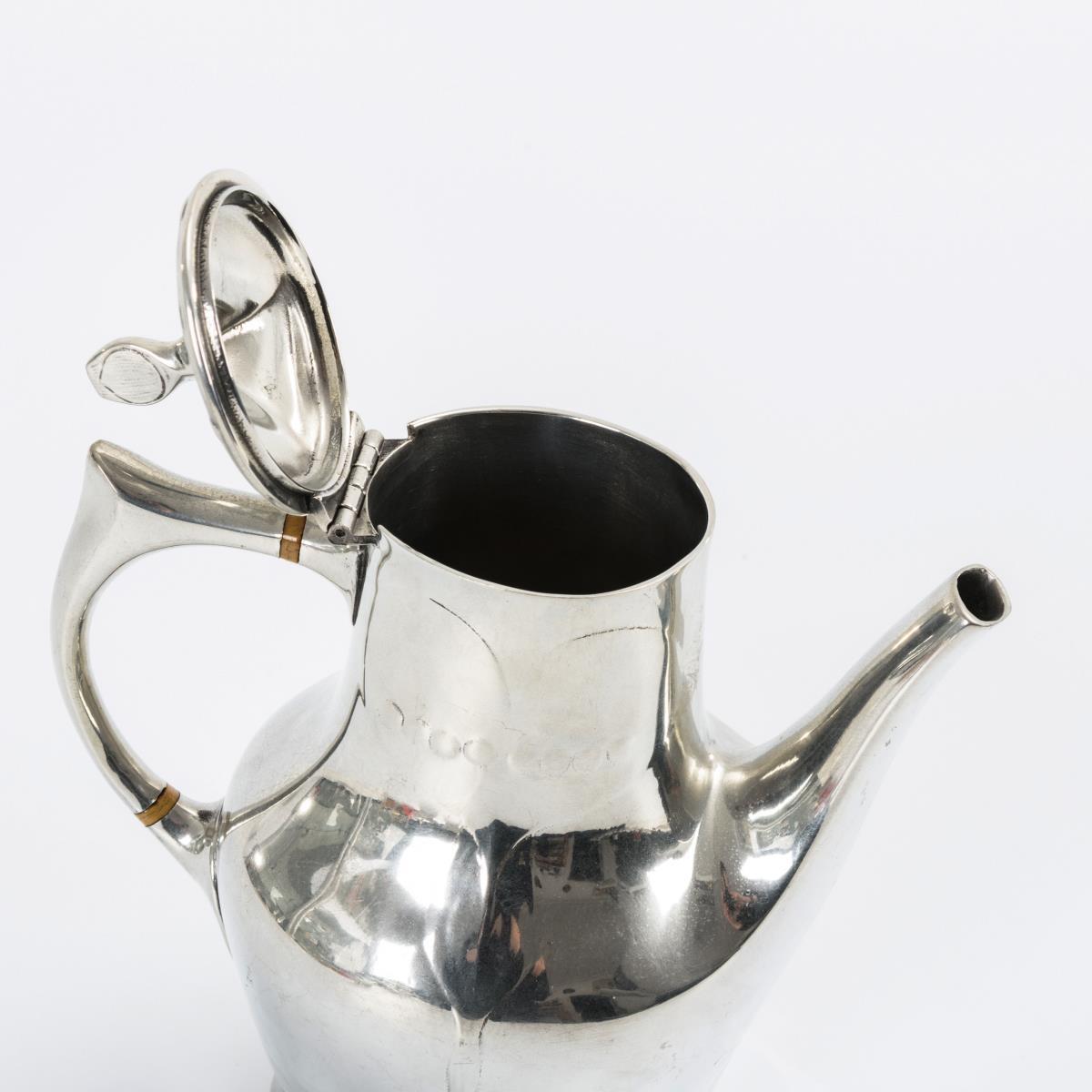 Kleine, elegante Kaffeekanne mit Scharnierdeckel, Zuckerdose mit reliefiertem