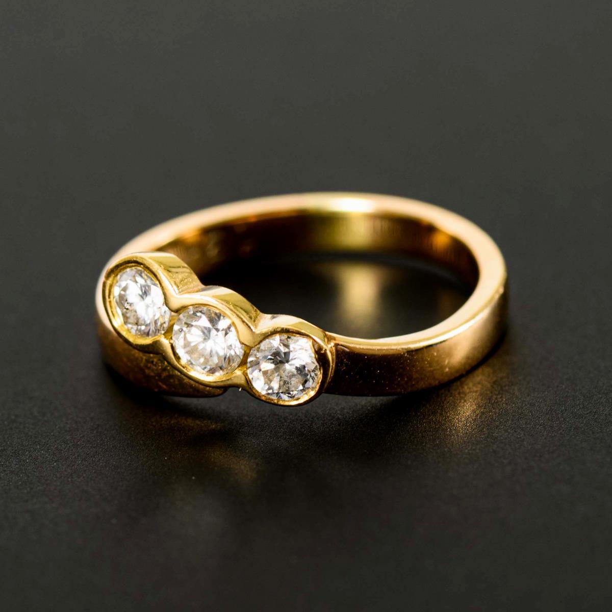 Tested yellow gold 585. Diamonds in total approx. 0.30 ct. White/PI. Ring size 54. 3.3 g.