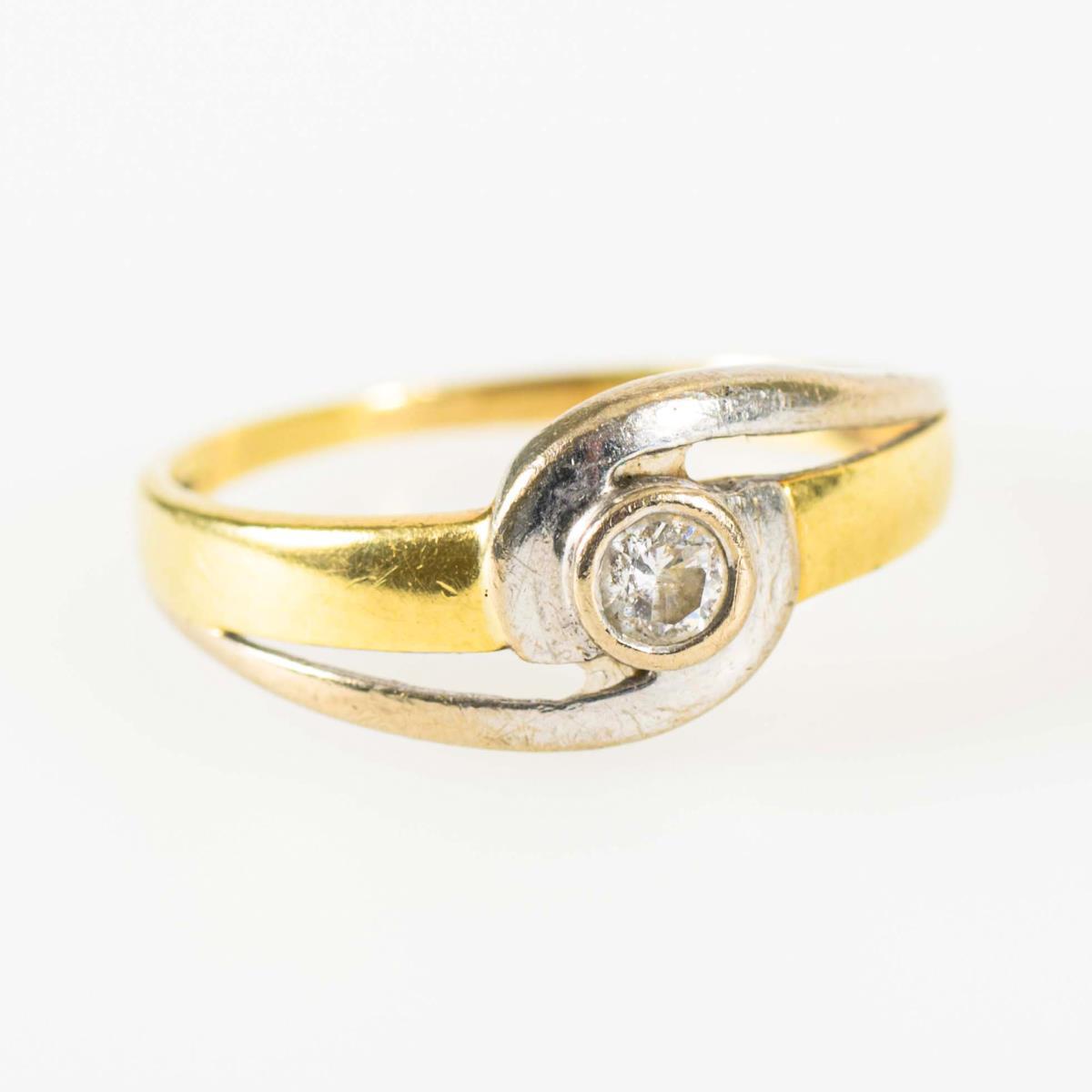 2-tone ring with small, bezel-set diamond.