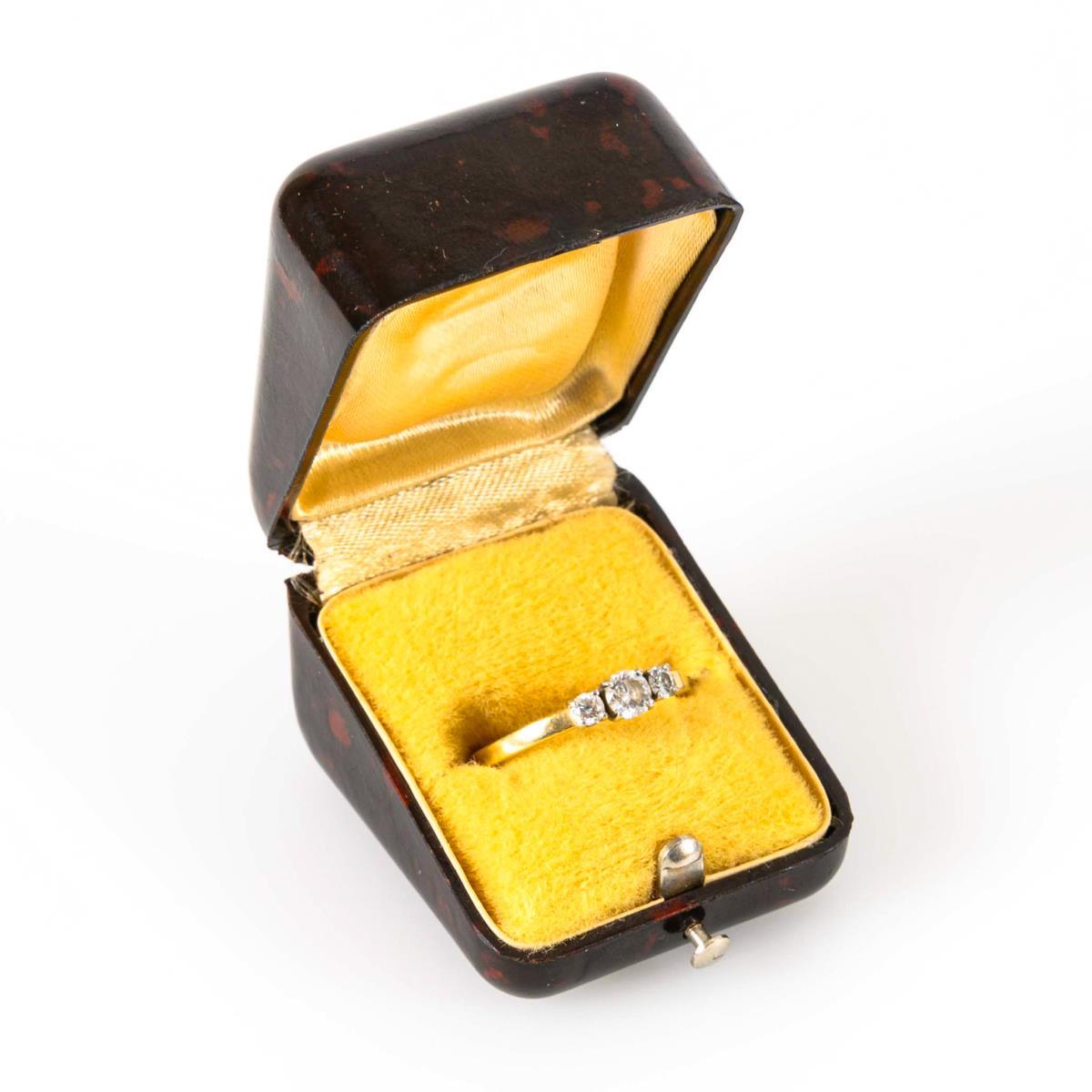 Ring with diamonds, in bakelite case.