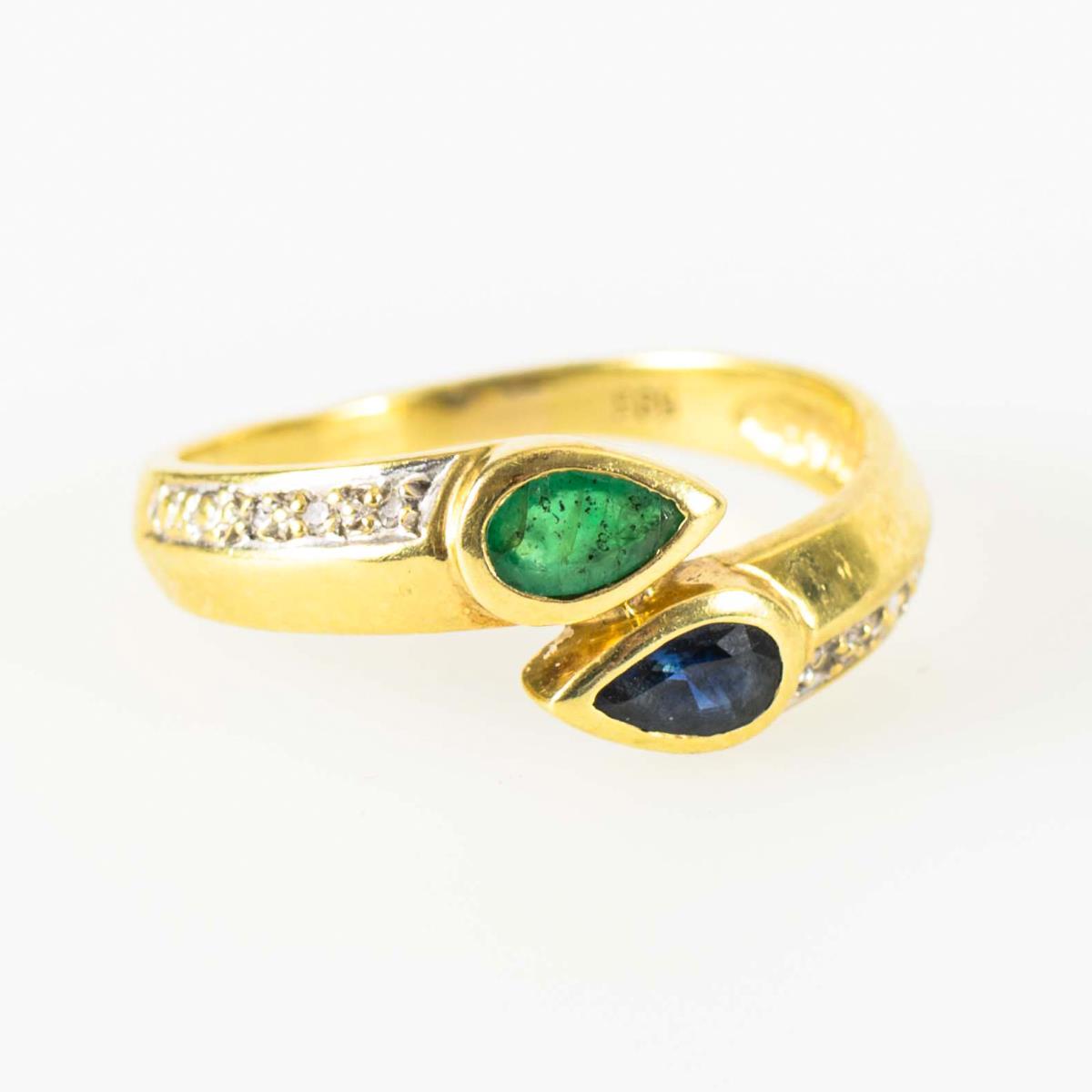 Ring with emerald and sapphire.
