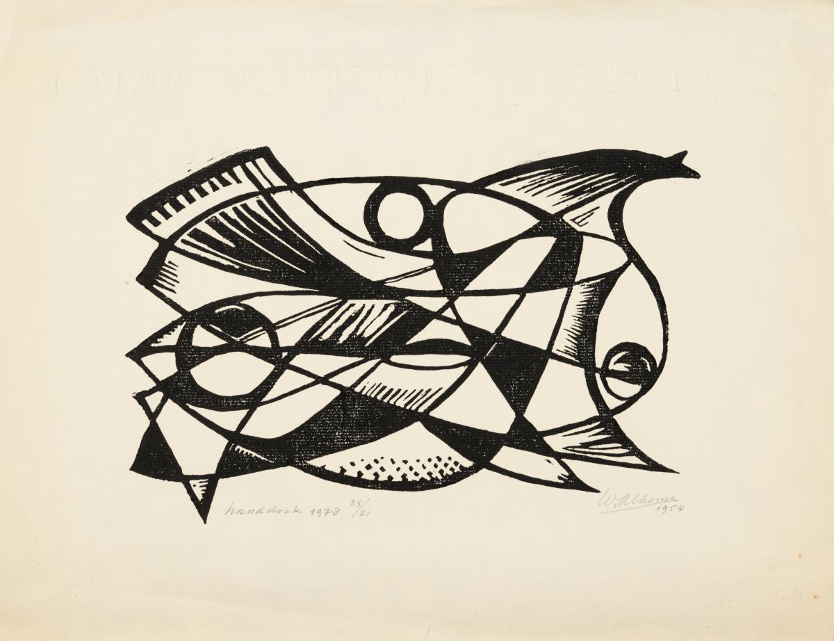 Linoleum cut. Pencil signature. Dated: 1954. 1978 handprint, copy 25/21.