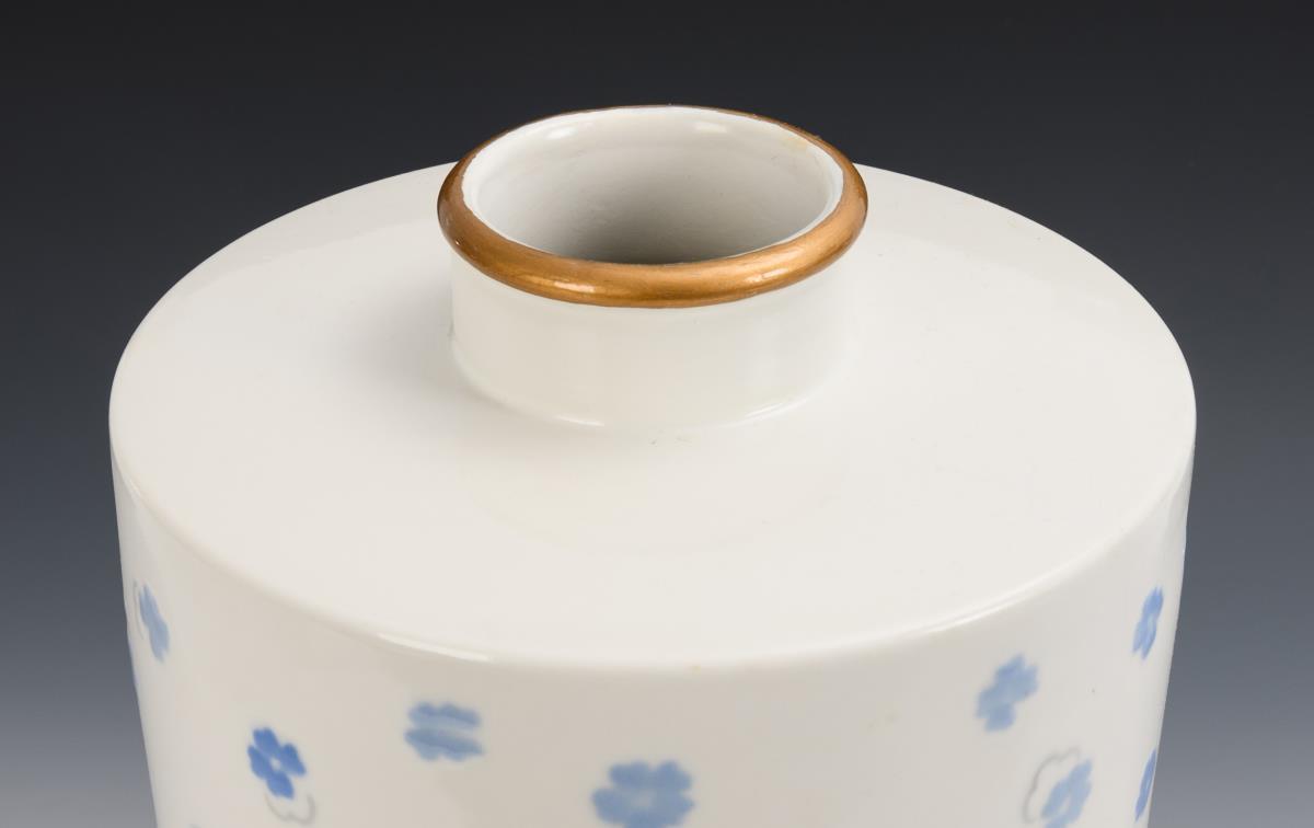 Painted underglaze, gold decoration. H 39 cm.