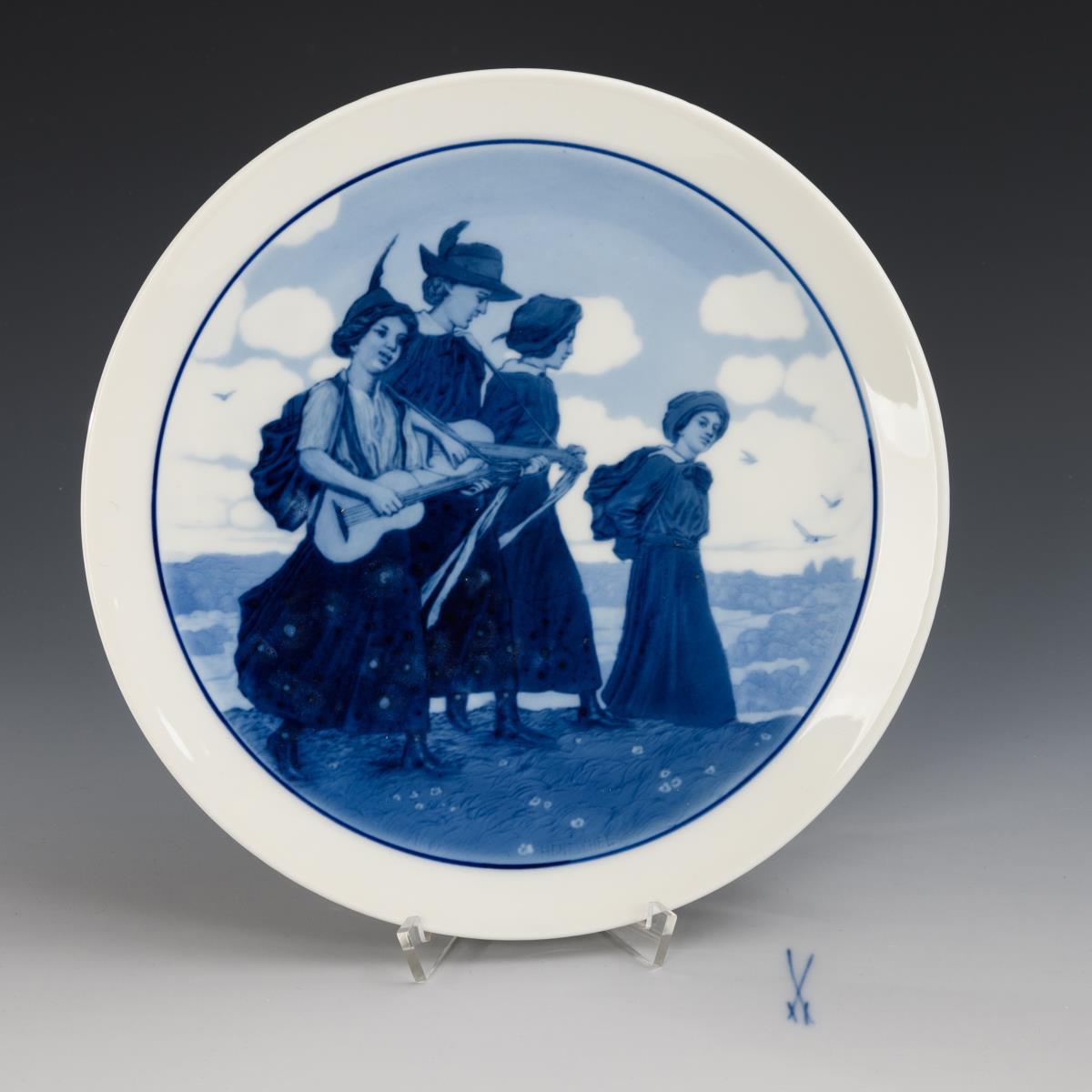 Plate with the depiction of four girls wandering through a landscape and singing to a traveling guitar.