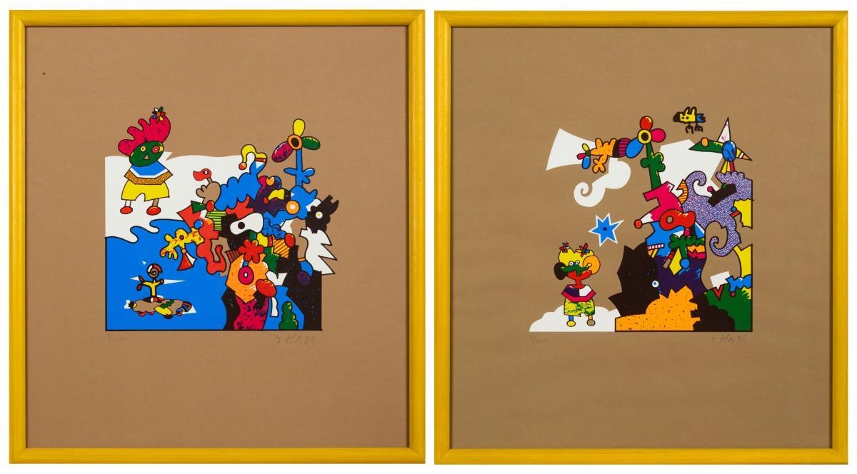 2 color screenprints on wrapping paper. Each with pencil signature. Each [19]81. Each 6/350.