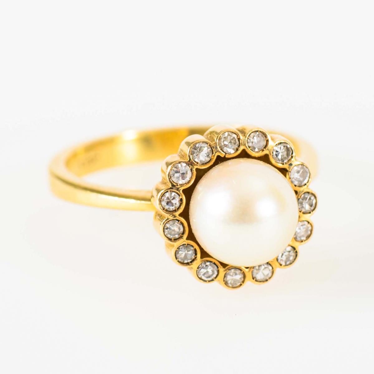 Stamped 750 yellow gold. Pearl Ø 7.5 mm. Ring size 54. 5.3 g.