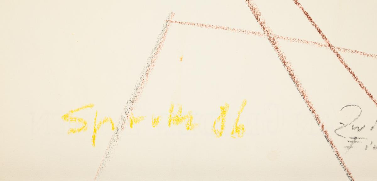 Crayon drawing. Chalk signature in yellow. [19]86.
