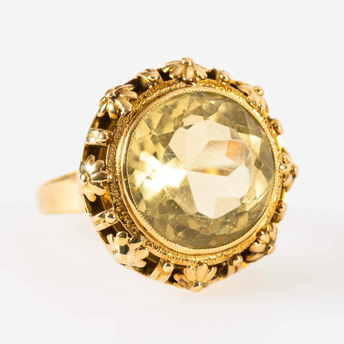 Marked yellow gold 585. 1930s. Ring size 58. 8.1 g.