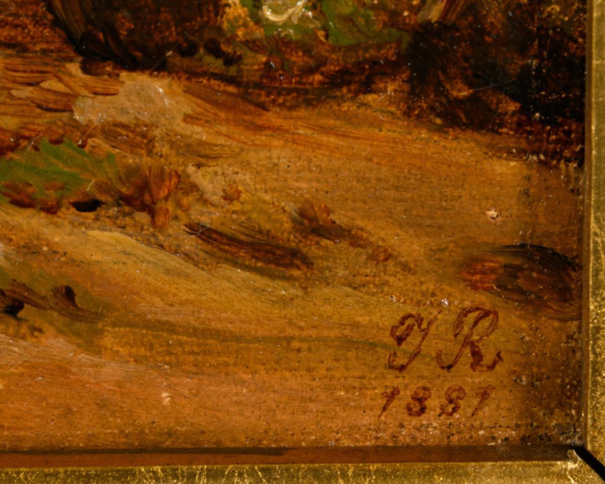 20 x 30 cm. Framed : 37 x 46 cm (gold stucco frame).