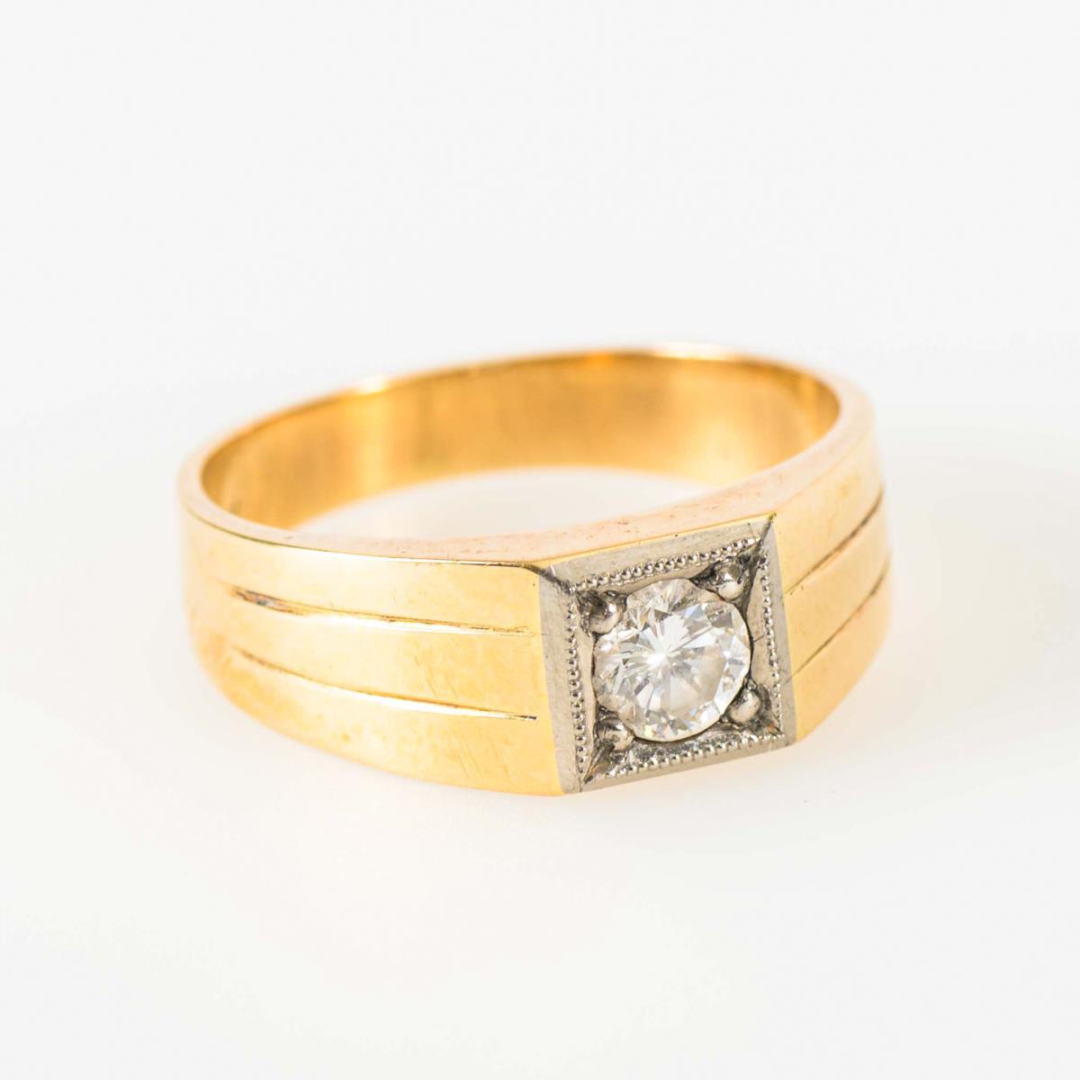 Marked yellow gold 585. Brilliant approx. 0.50 ct. White/PI. Ring size 61. 7.9 g.