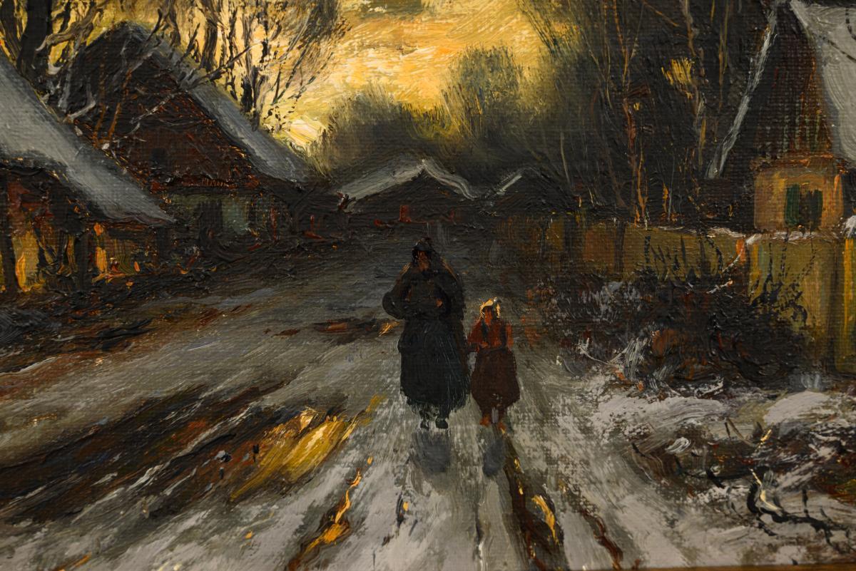 Oil/canvas/hardboard. Signed lower left.