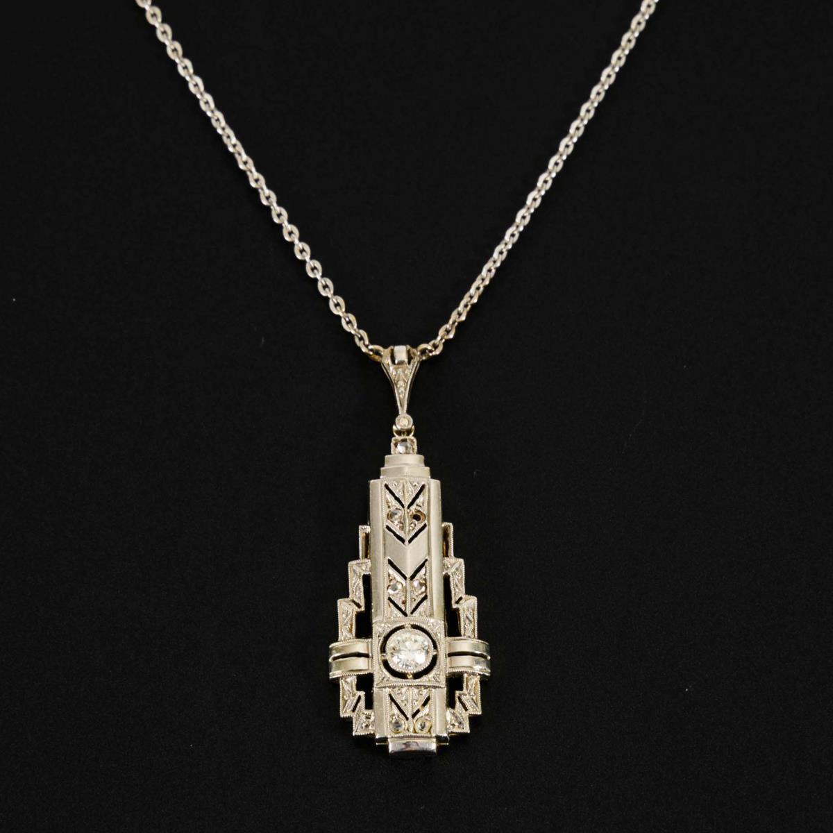 You are here:   Home Categories Jewelry Art-Déco-Anhänger mit Altschliff-Diamanten an Kette