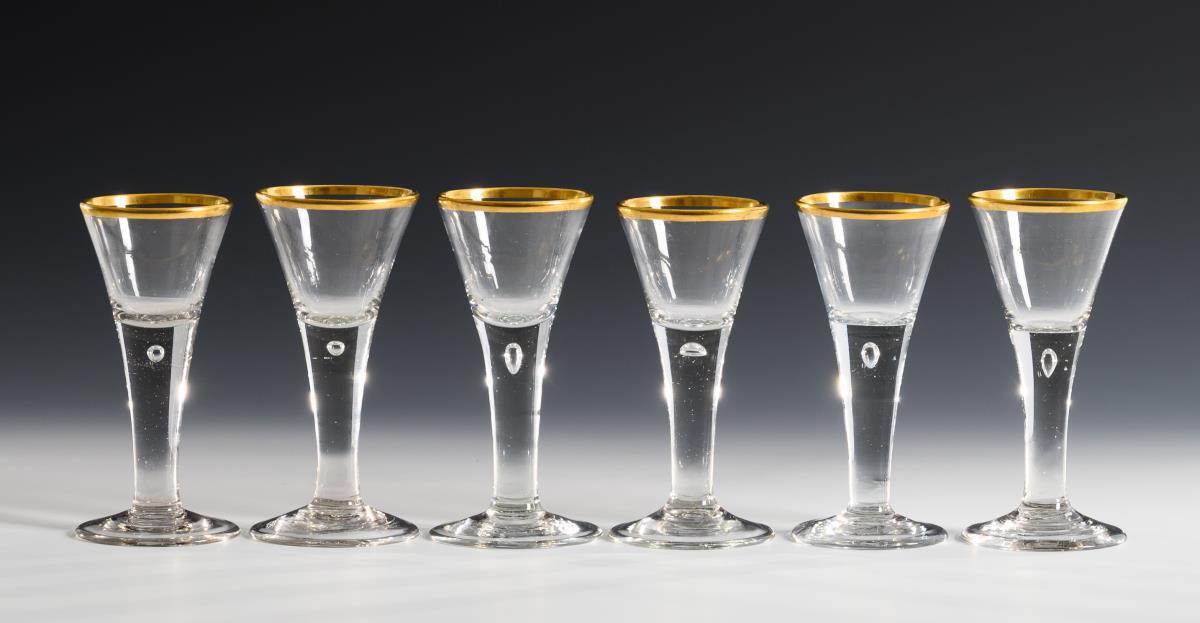 Colorless glass, gold decoration. H approx. 17.5 cm.