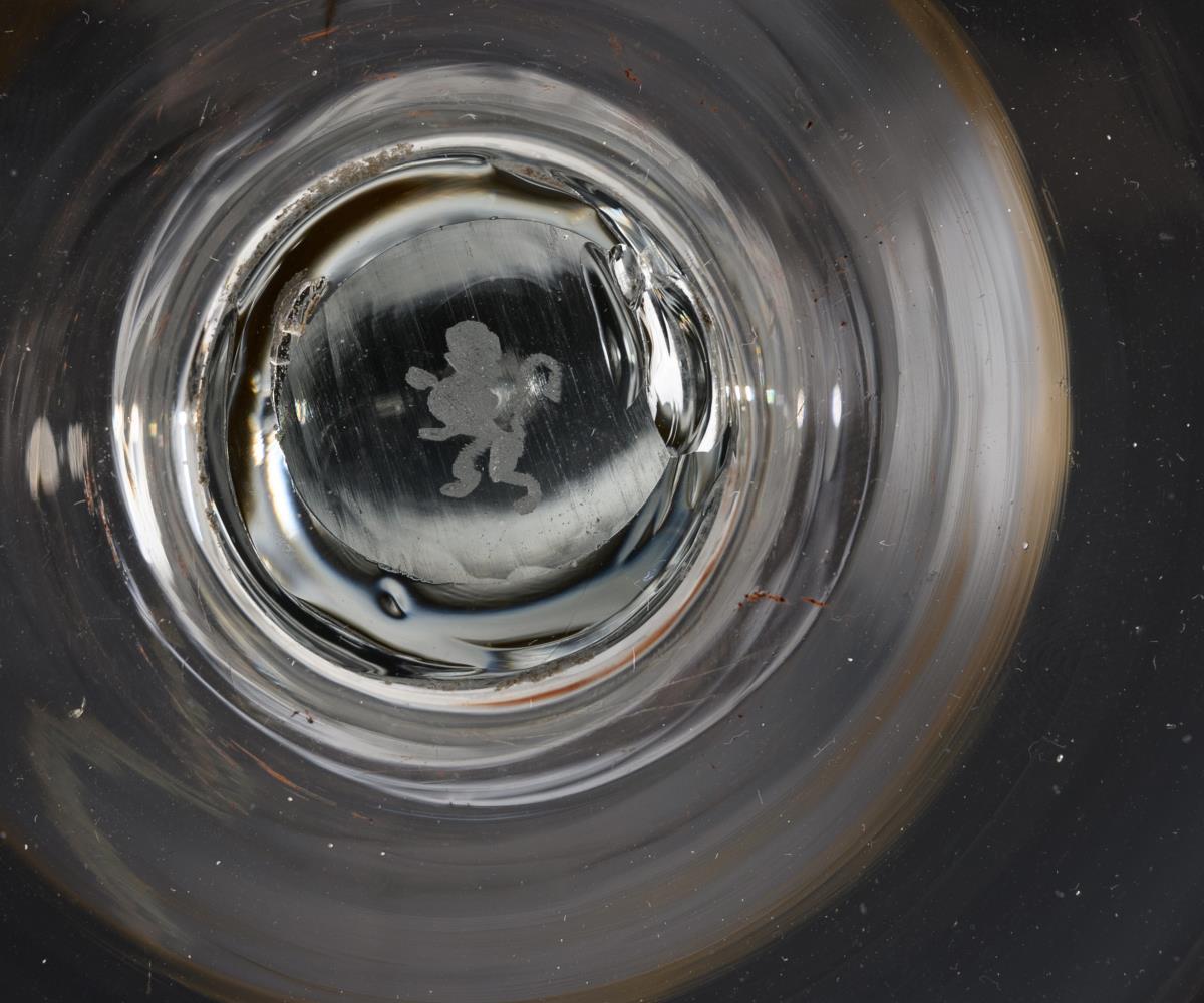 Conical dome extending into the solid shaft with pierced air bubble, round foot;; cut out demolition.