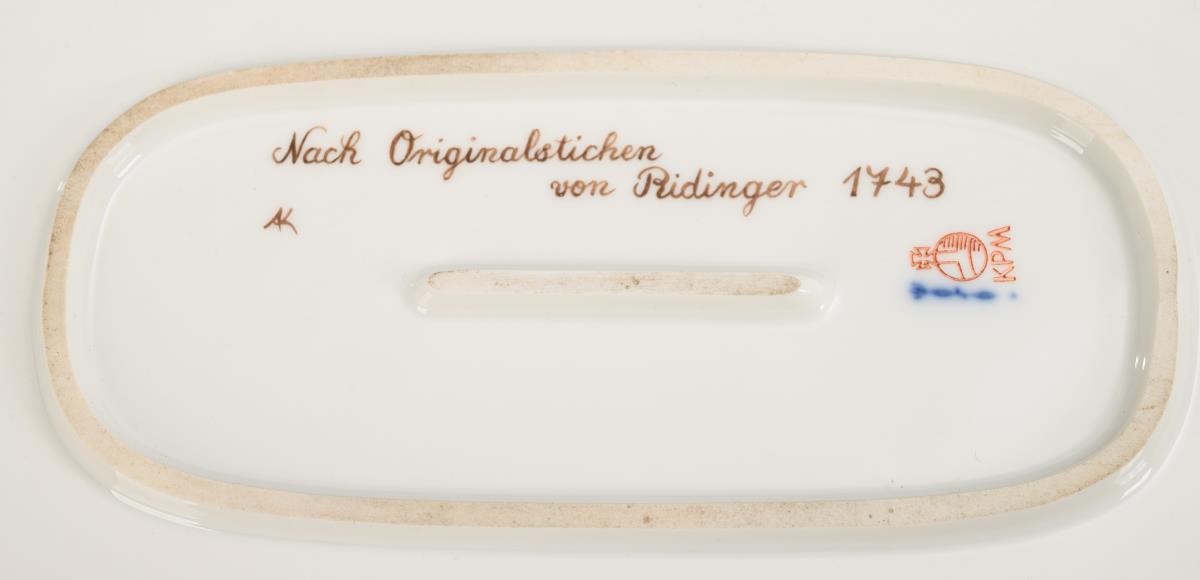 Sceptre mark and red orb, 20th century. Painter's monogram "AK" on the underside and the inscription "After original engravings by Ridinger 1743".