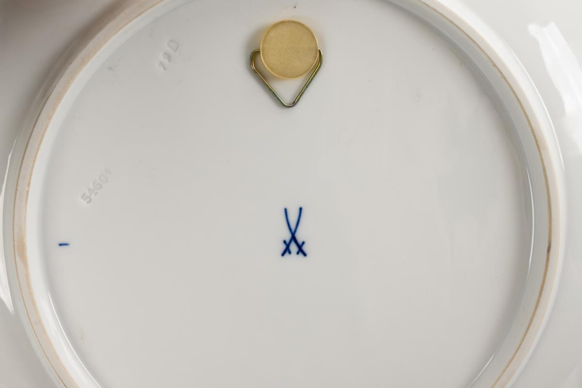 Polychrome painted, decorated in gold. Ø 26 cm.