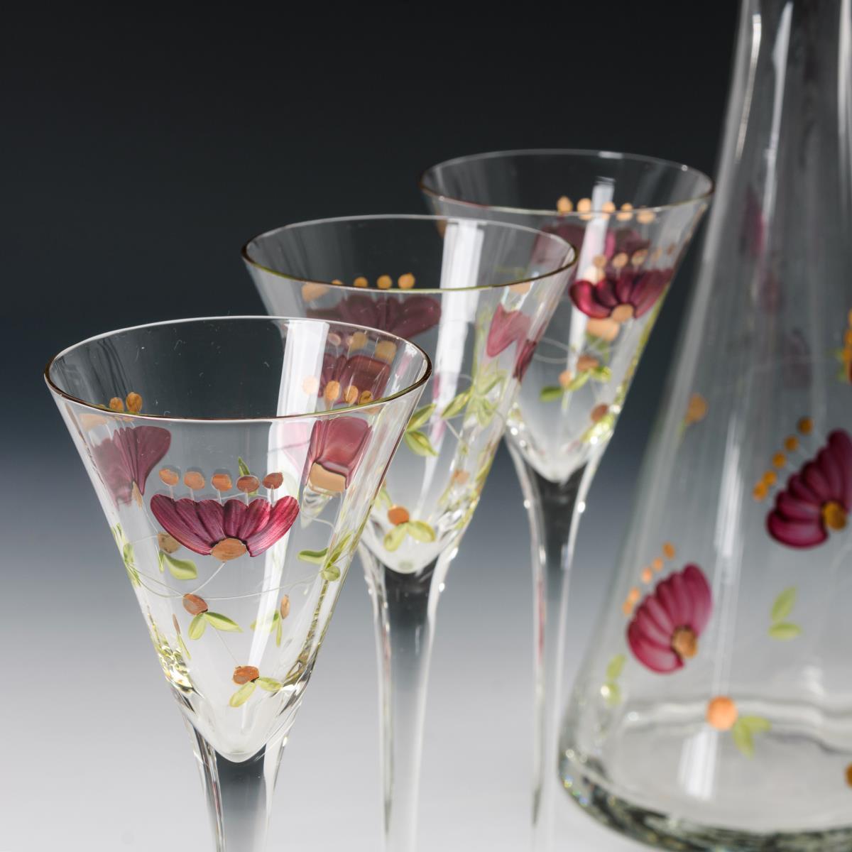20. Jh. Farbige Blumenmalerei in der Art des Jugendstil. Transparentemail, Stiele geschliffen.