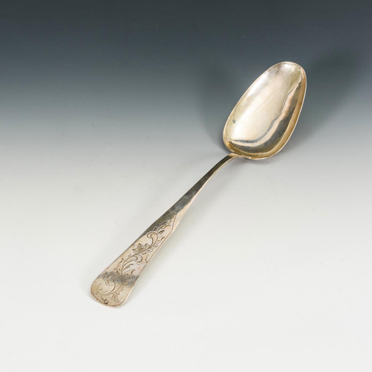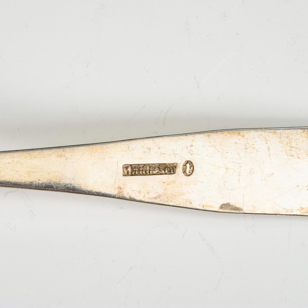 Versilberter Löffel mit floral graviertem Griff. Verso Widmungsgravur.
