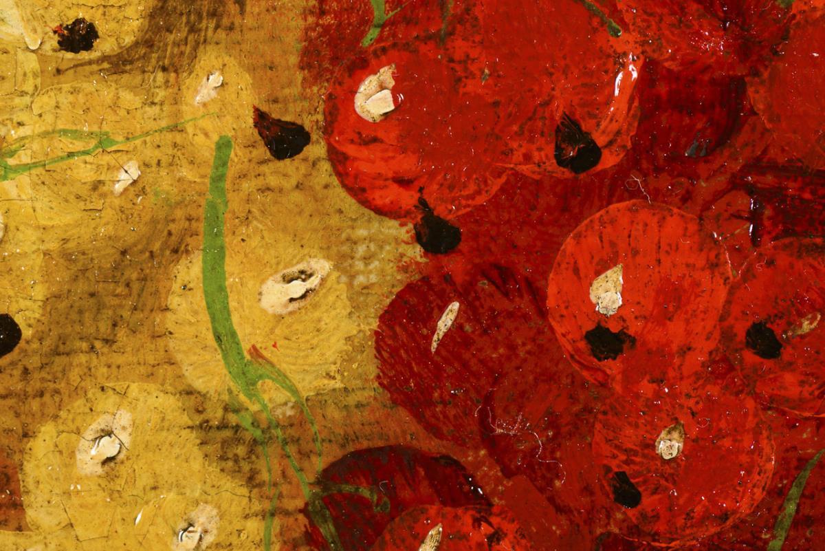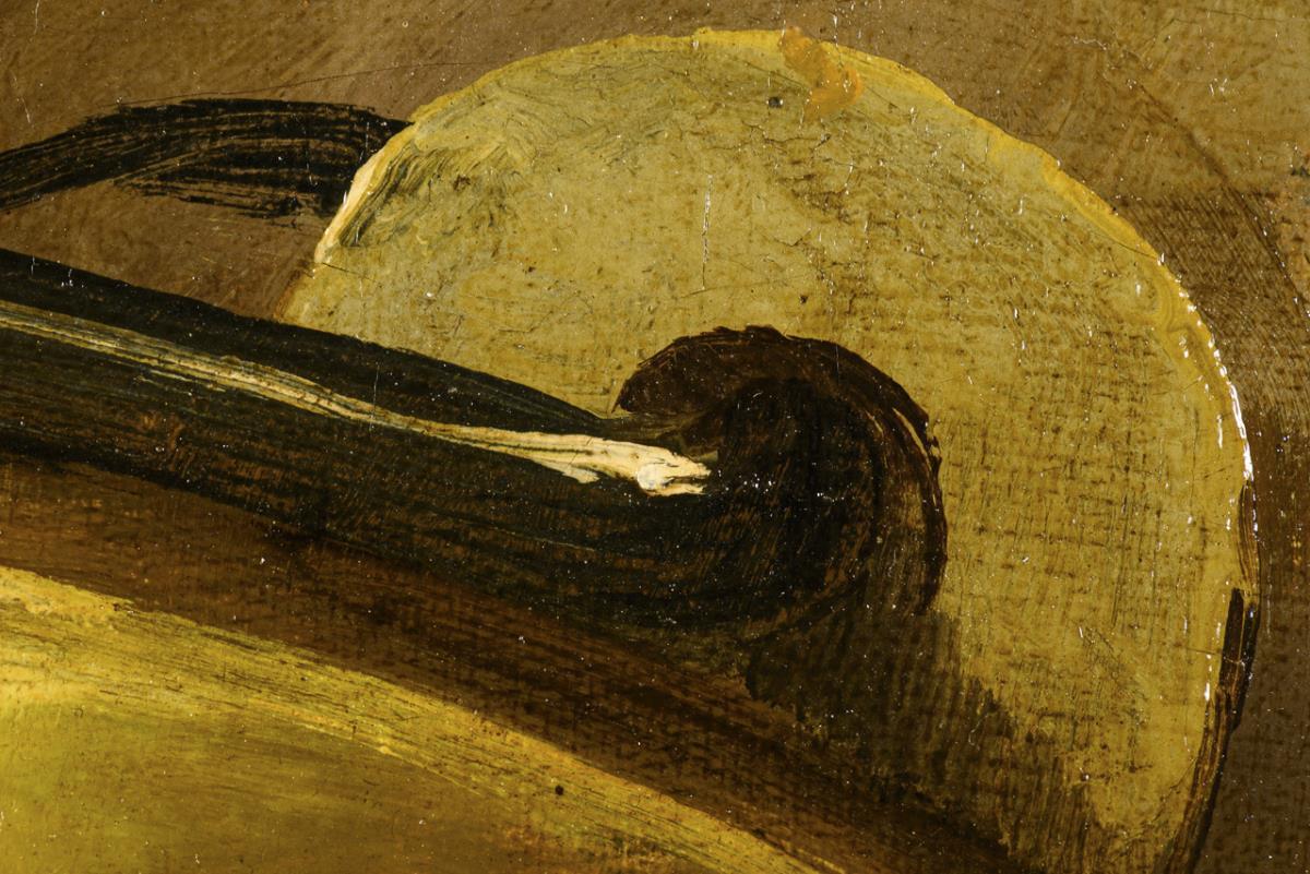 46 x 55 cm. Framed : 74 x 84 cm (gold stucco frame).
