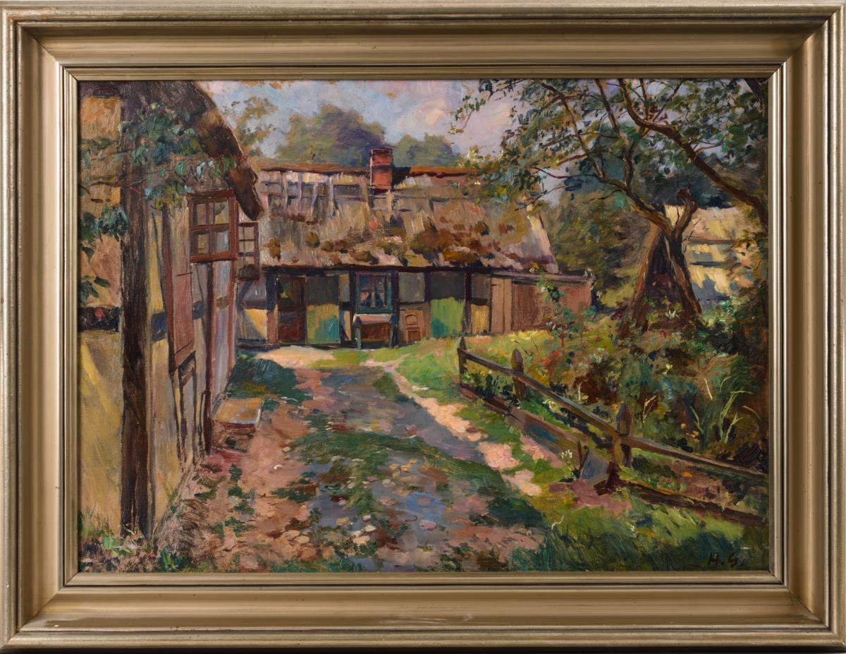 Monogrammist "H.G.": Sommeridylle mit Fachwerkgehöft
