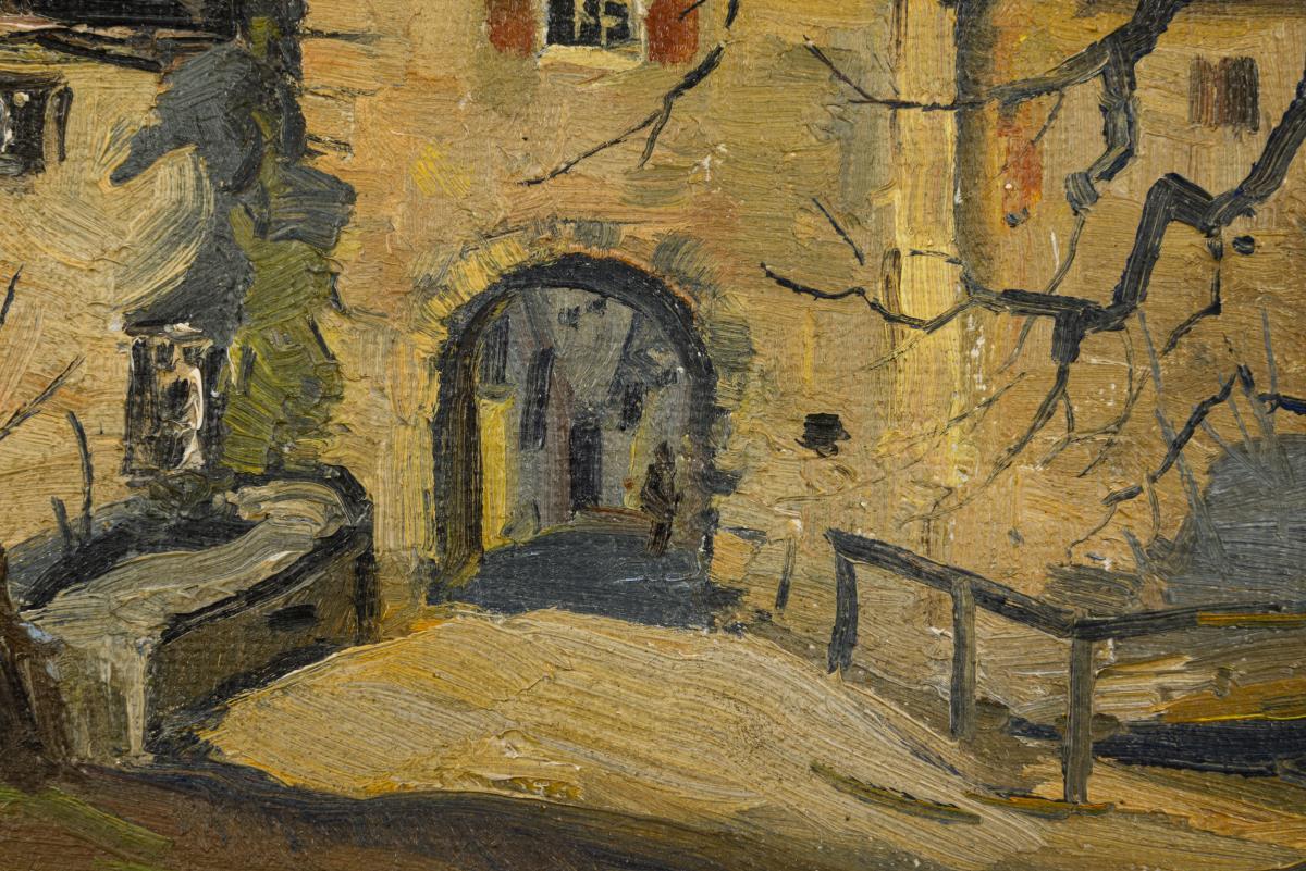 Oil/hard fiber. Signed lower right, inscribed/titled verso.