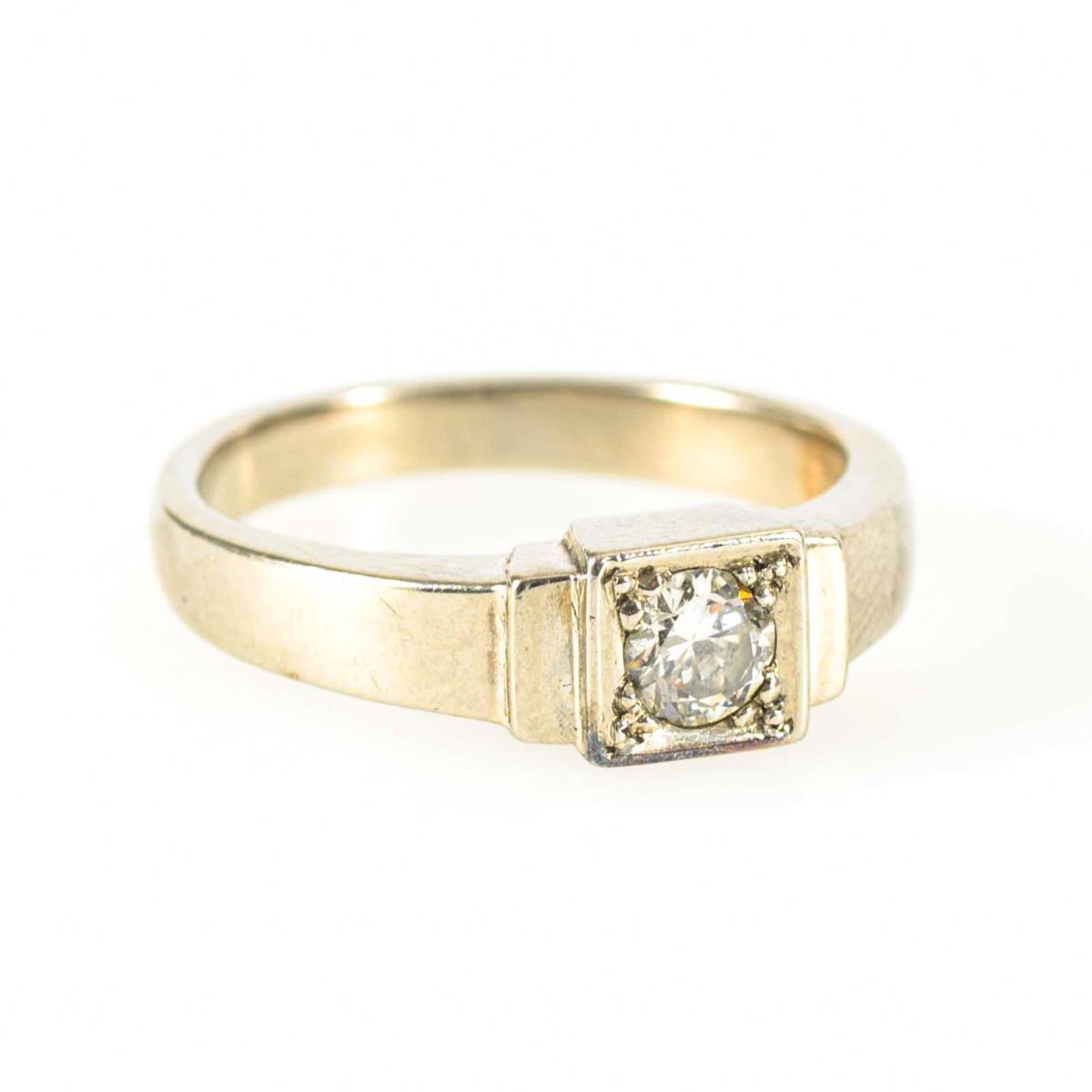 Stamped white gold 585. Ring size 56. 5,8 g.