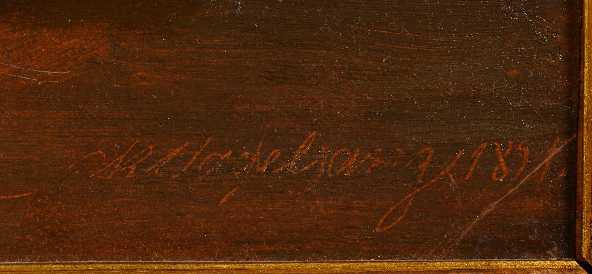 Oil/paper/wood. Signed lower right, inscribed verso. 1891.