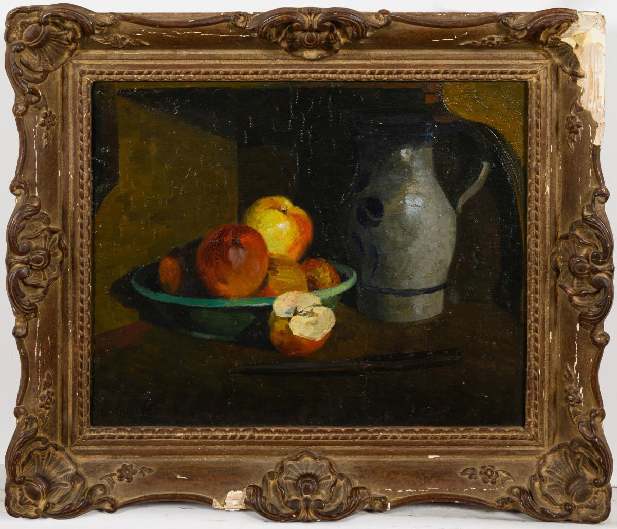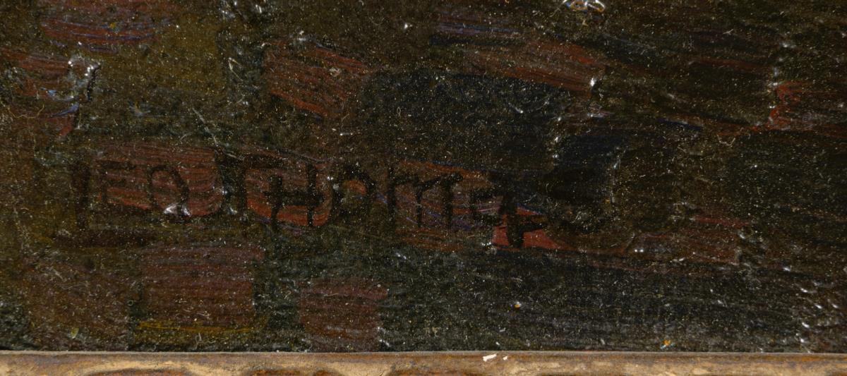 Oil/canvas/cardboard. Signed lower left, inscribed verso.