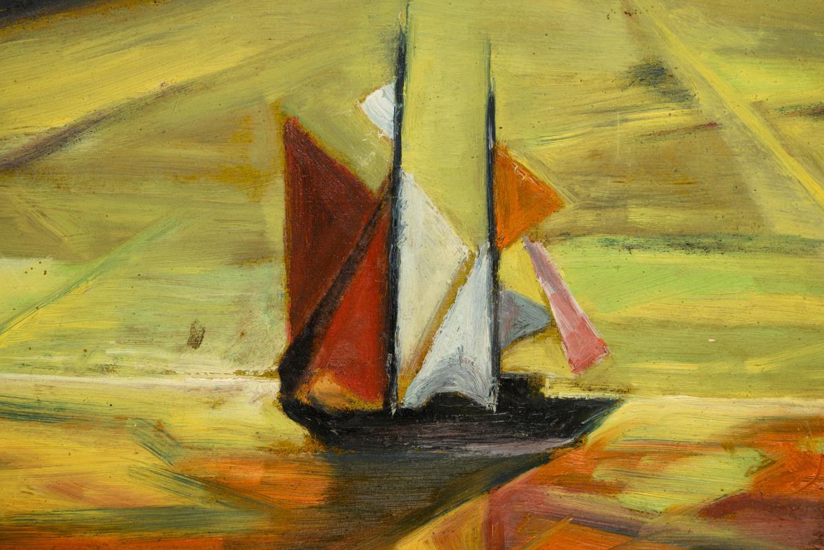 Oil/hard fiber. Monogrammed lower right. 2nd half of the 20th century