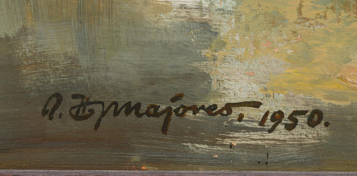 Oil/painting card. Signed lower left. 1950.