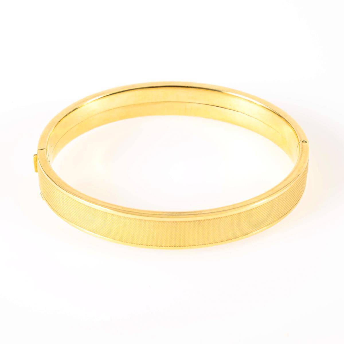 Stamped 333 yellow gold. Ø 6.3 cm. Width 1 cm. 21,8 g.
