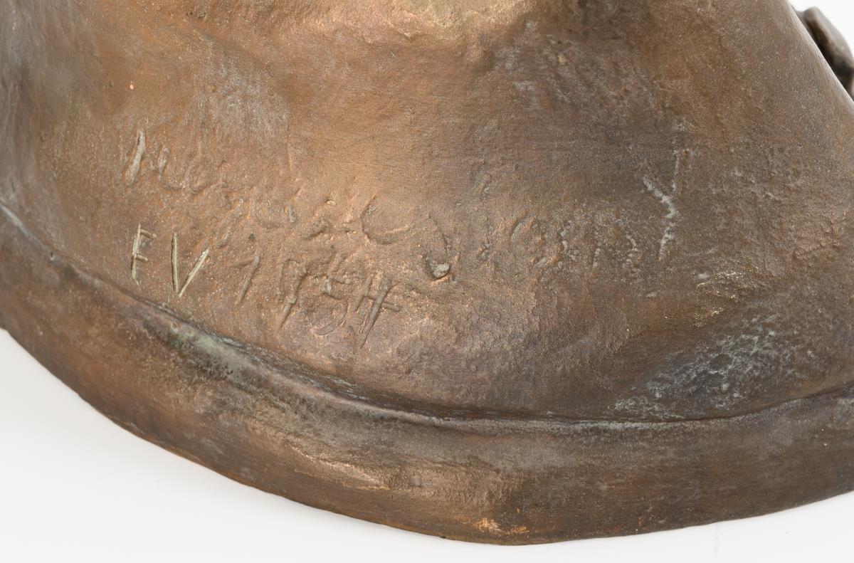 Bronze patinated. Inscribed with monogram, dated in the form "1957" with indistinct addition "..... Soest". H 43 x 37 x 24 cm. 18.8 kg.