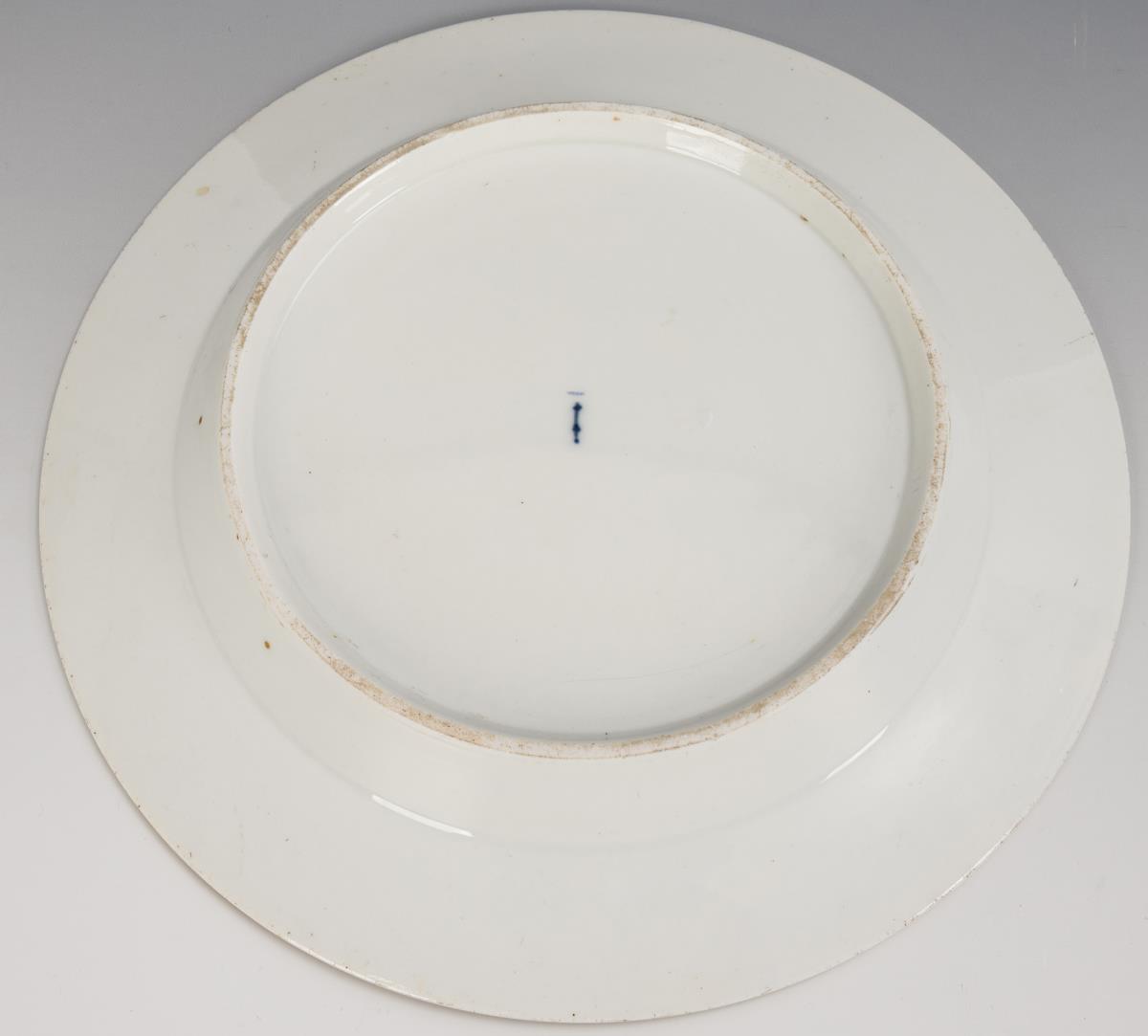 Plate with gold-painted meander border. The mirror depicts a mountain landscape with farmers with cows and wagons at a ford.