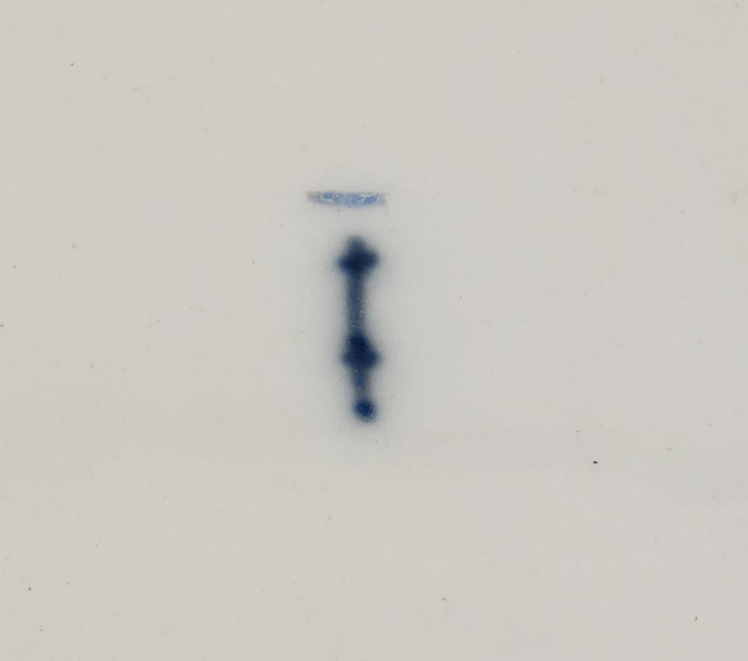 Polychrome painted, decorated in gold. Ø 24 cm.