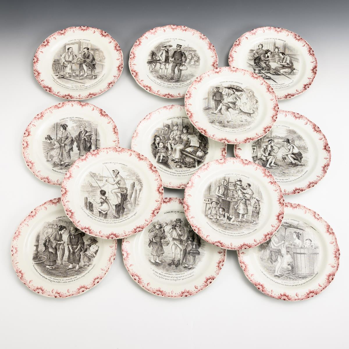 12 rare plates with scenes of everyday life and figures from the series "Scènes de la vie japonaise". HB & Cie, Choisy-le-Roi.