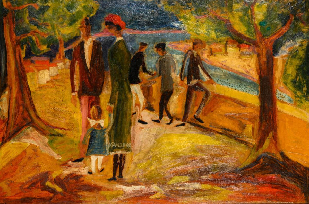 Rhenish Expressionist: River landscape with staffage