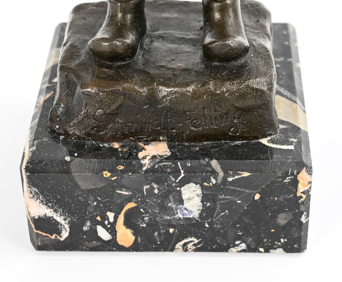 Bronze patinated, black marble base. Marked. H 18 / 21 cm.