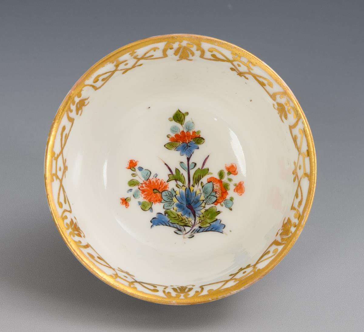 Polychrome painted, gilt. Cup (h 4.5 cm), original saucer (Ø 12 cm).