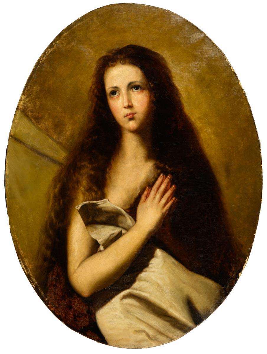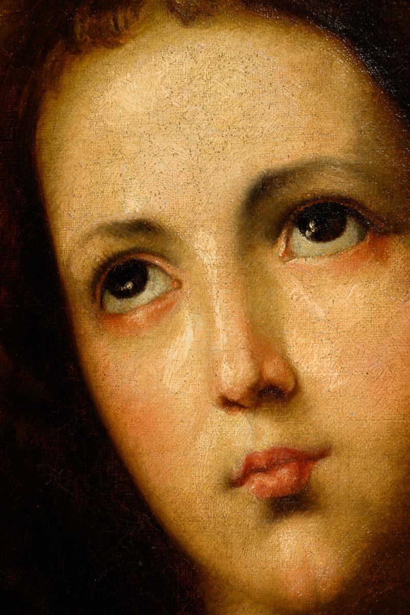 The praying saint wrapped in white cloth with her gaze directed towards heaven. Minimal traces of age.