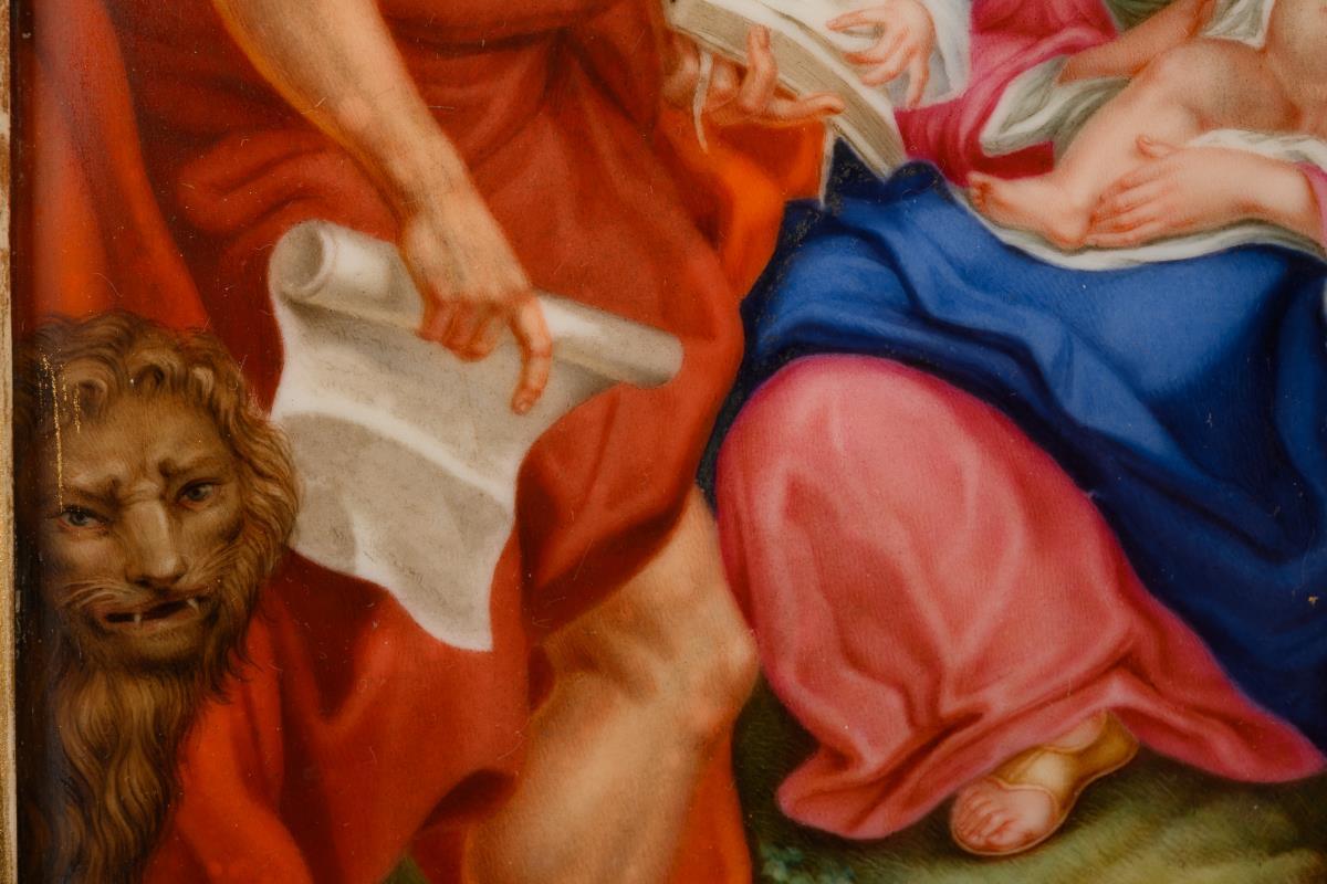 Rectangular panel depicting the Madonna and Child surrounded by St. Jerome, St. Mary Magdalene, St. John the Baptist and an angel, after a painting by the Italian painter Antonio Allegri, gen. Coreggio (1489-1534).