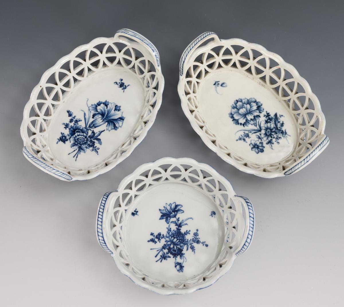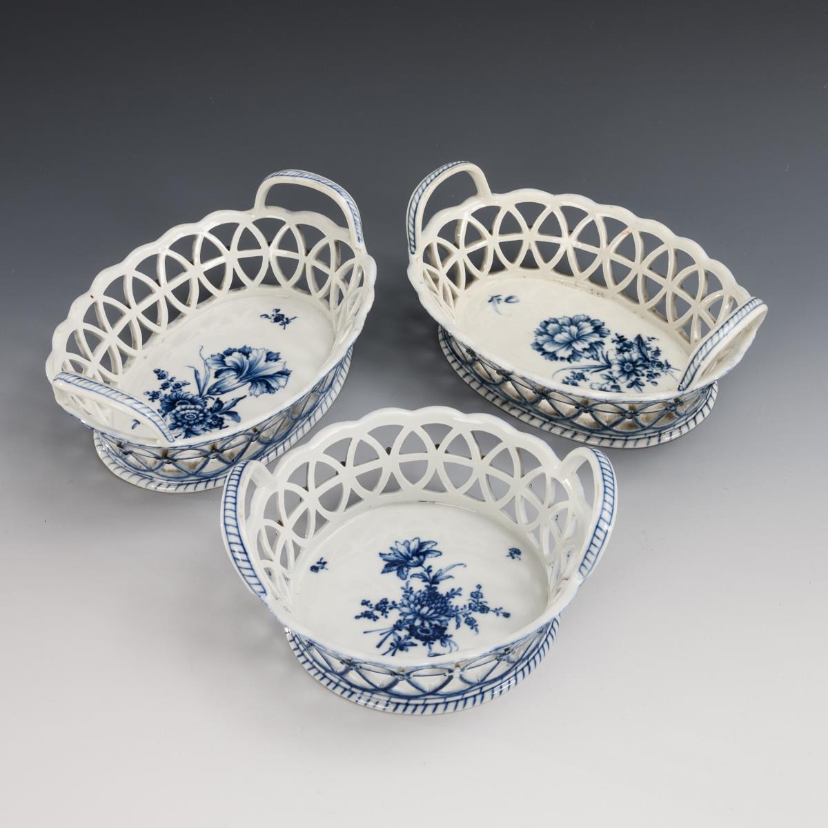 Unglazed blue floral painting. 2 baskets (L 20.5 cm), 1 basket (Ø 18 cm).