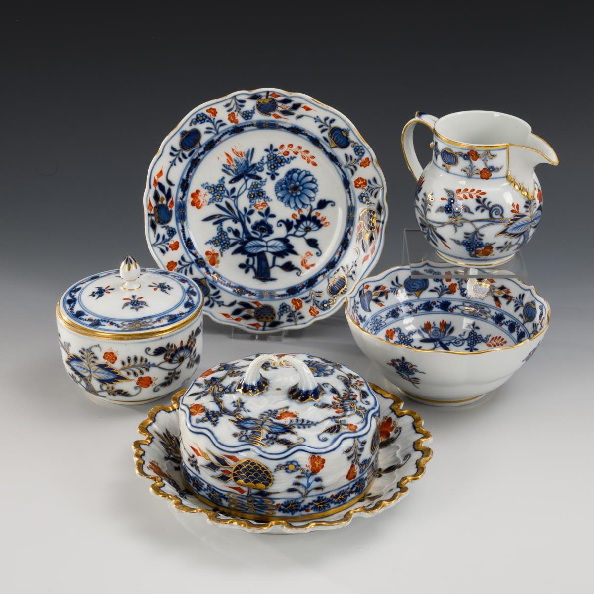 5 onion pattern porcelains "Royal colorful". Meissen.