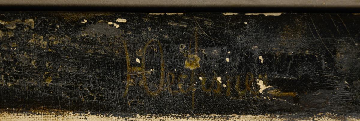 Oil/canvas. Indistinctly signed verso on folded canvas. Late 19th century