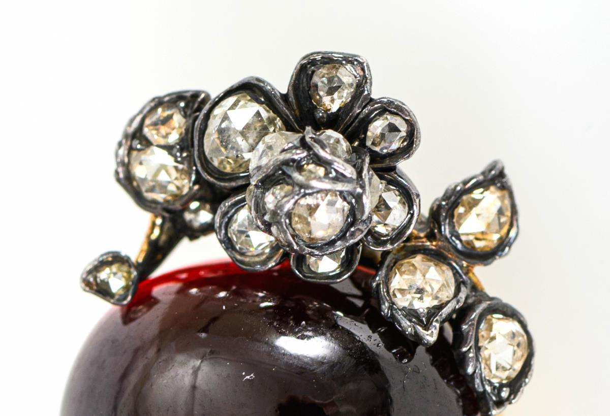 An antique brooch with garnet and old-cut diamonds, 19th century.