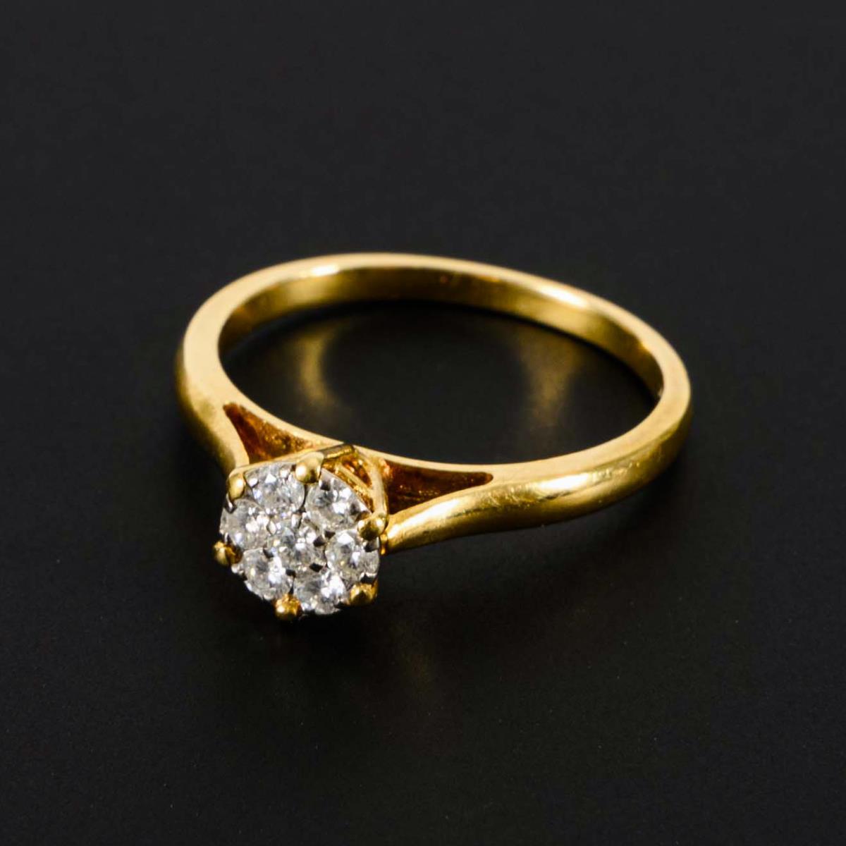Marked 750 yellow gold. Diamonds in total approx. 0.28 ct. White/PI. Ring size 54. 3.1 g.