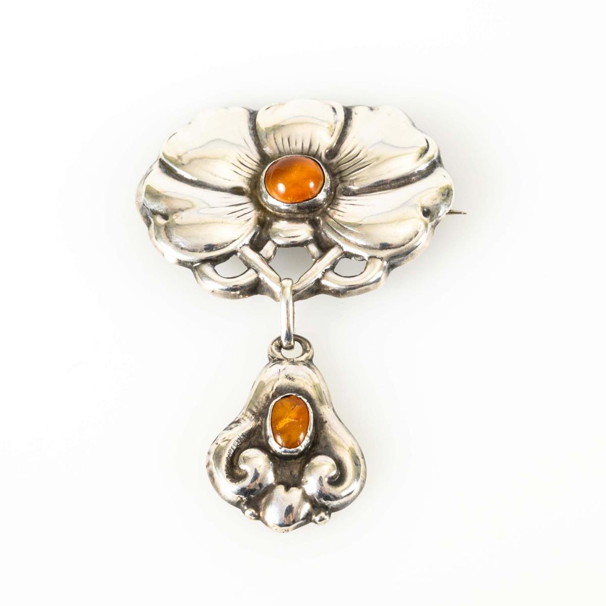 Danish Art Nouveau brooch with amber stones, circa 1910.