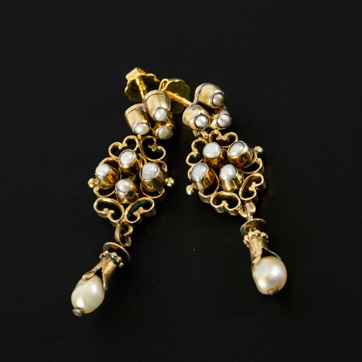 Antique pair of stud earrings with pearls.