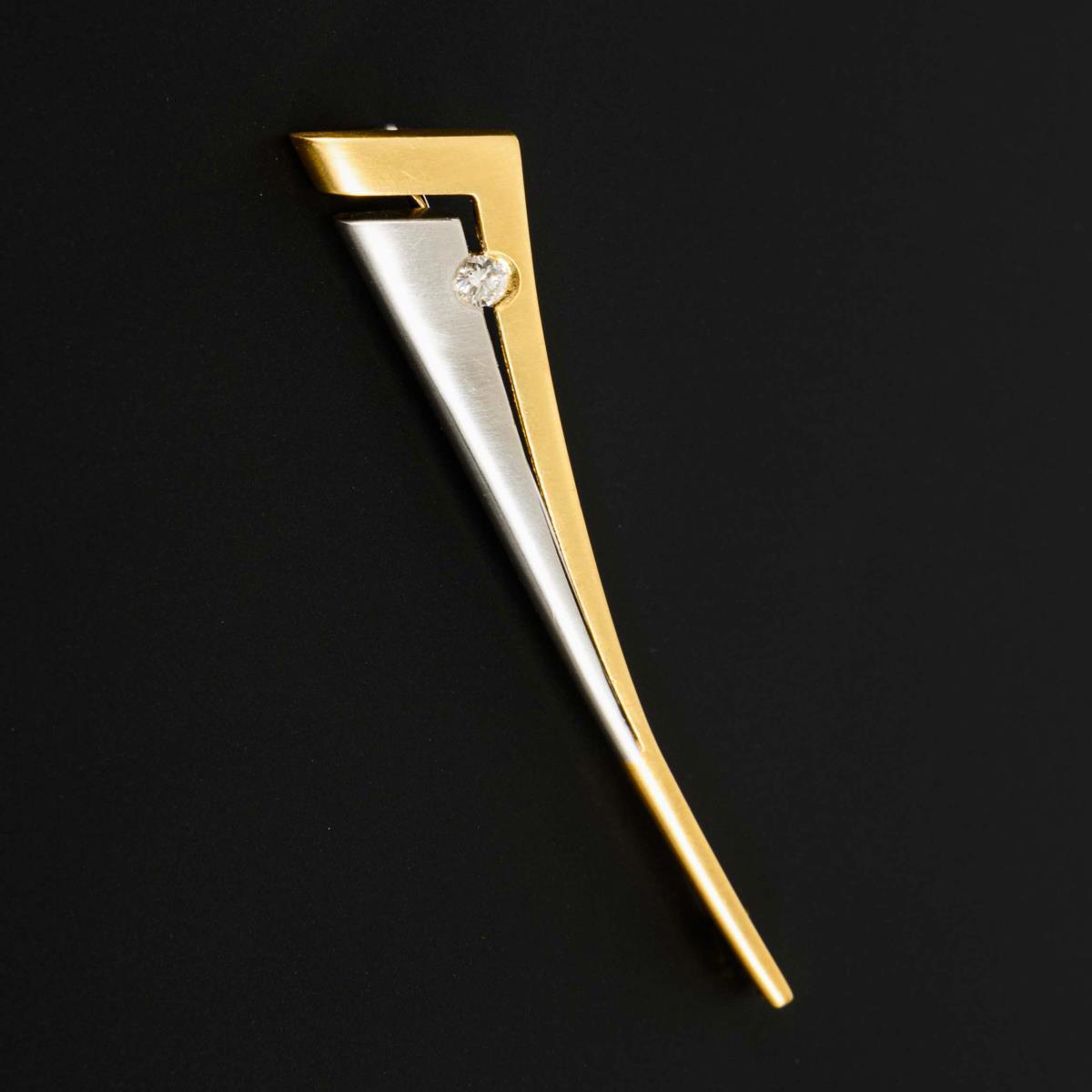 2-colored brooch with embedded brilliant-cut diamond. Sliding hook.